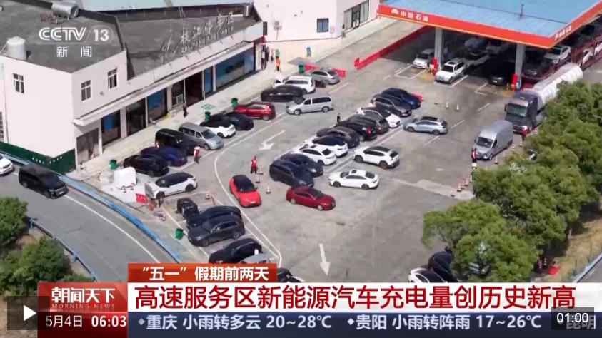 今年“五一”假期,新能源汽车出行规模继续扩大,多地高速公路服务区、景区充电站一片繁忙。国家电网智慧车联网平台数据显示,五一假期两天,全国高速服务区新能源汽车充电量达到1590万千瓦时,比去年同期增长28%,创历史新高。